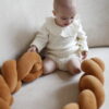 Бортик-коса – зручна, дуже м’яка, приємна на дотик, не викликає алергії, не обмежує доступ повітря в ліжечко, даючи шкірі малюка дихати, не займає багато місця. Завдяки якісному наповнювачу бортики відмінно тримають свою форму, не провисають, а зручні тканинні зав’язочки надійно фіксують положення коси і забезпечують гарне прилягання до стінок. Даруючи комфорт і безпеку малюкові, а ліжечко виглядає стильно, затишно та акуратно.